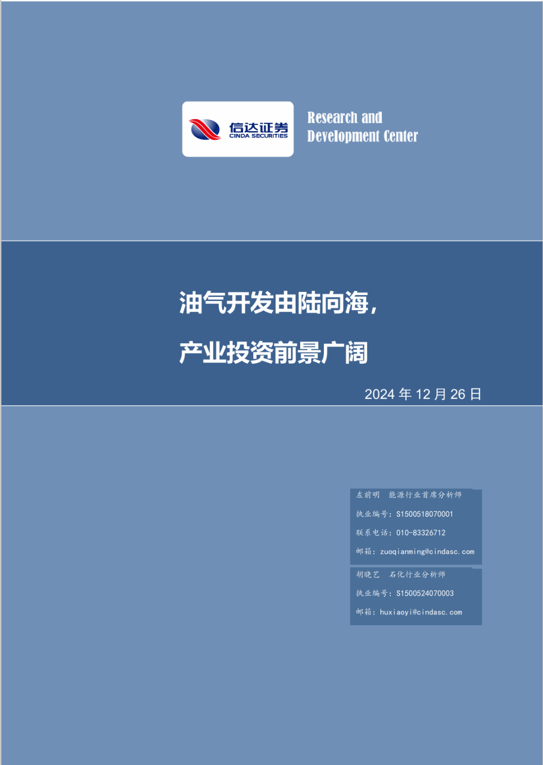 本文源自报告:《油气开发由陆向海,产业投资前景广阔》 | 发布时间:2024年12月26日 | 发布报告机构:信达证券研究开发中心 | 报告作者:左前明(金麒麟分析师),能源行业首席分析师,S1500518070001;胡晓艺,石化行业分析师,S1500524070003。