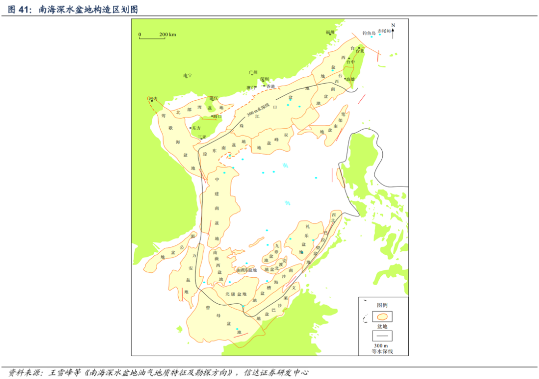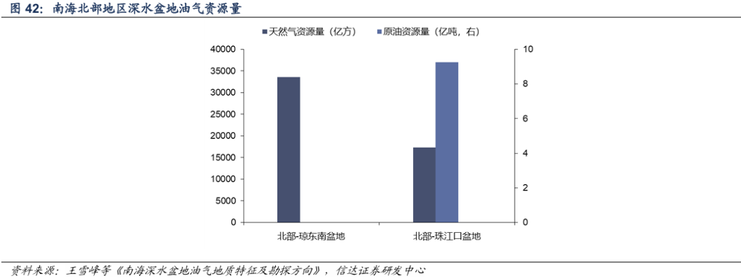 由于地缘政治问题,我国海上油气勘探研究主要集中在南海北部,南海北部有4个盆地,分别为莺歌海、琼东南、珠江口和北部湾盆地,南海北部的深水油气勘探主要集中在珠江口盆地和琼东南盆地。从资源潜力看,我国南海北部深水区勘探仍处于早期阶段,以天然气为例,已探明天然气3900亿方,待发现天然气资源量为36000亿方,天然气资源量50900亿方(根据2015年全国油气资源动态评价结果),天然气储量探明率不到10%,南海深水区域具有巨大的油气勘探潜力。