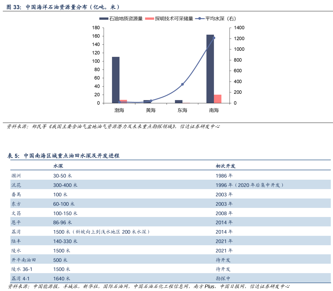我国南海石油资源量丰富,占中国海域总资源量的50%以上,其中南海深水油气资源量占南海油气资源总量的70%,南海海域平均水深超过1000米,远高于渤海地区,对于油气开采提出了技术要求。