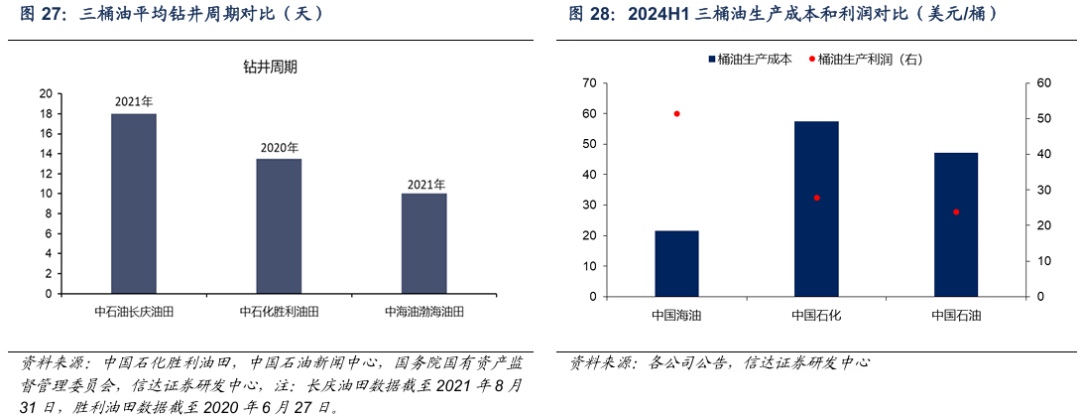 对于在产油田,中国海油自20世纪90年代以来,已连续开展三次“优快钻井”提升行动,目前渤海油田平均钻井周期少于10天,平摊到桶油作业费用下降,对应桶油生产成本(仅包括操作费和折旧摊销)为22美金/桶,也远低于陆上两桶油(中国石油、中国石化的桶油生产成本分别为57、47美元/桶)。