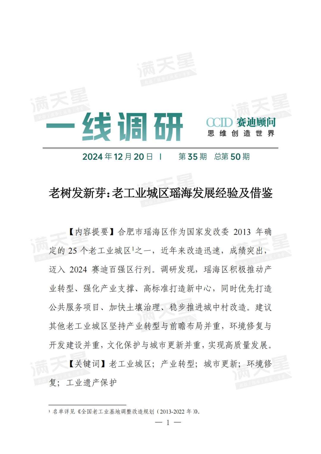 合肥市瑶海区作为国家发改委2013年确定的25个老工业城区之一,近年来改造迅速,成绩突出,迈入2024赛迪百强区行列。调研发现,瑶海区积极推动产业转型、强化产业支撑、高标准打造新中心,同时优先打造公共服务项目、加快土壤治理、稳步推进城中村改造。建议其他老工业城区坚持产业转型与前瞻布局并重,环境修复与开发建设并重,文化保护与城市更新并重,实现高质量发展。